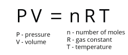 A theoretical gas which behaves as predicted by the ideal gas equation. The molecules in an ideal gas are assumed to have no volume, and to experience no intermolecular forces of attraction or repulsion. The ideal gas equation uses the gas constant, R, and describes the relationship between a gas’s pressure (P), volume (V), amount (n, in moles), and absolute temperature (T, in Kelvins)
