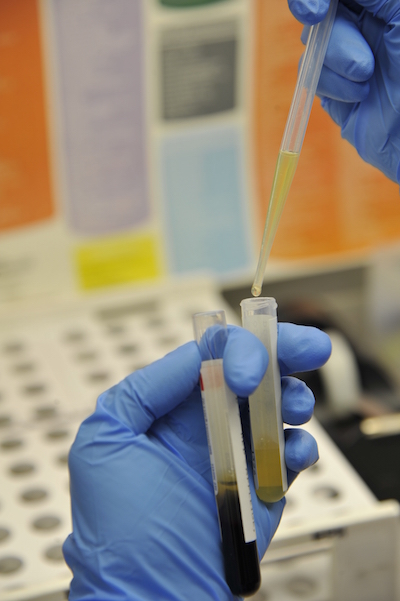 If you know anyone who is diabetic, you may have heard something about that person’s blood sugar, or blood glucose. Glucose is a type of sugar (see our module Energy Metabolism I: An introduction). It’s the main source of energy in cells, and since its concentration in the blood should not be too high, nor too low, diabetics check their glucose levels frequently. Usually, they do this with a device that requires only a drop of blood. It’s called “whole blood,” because an individual needs only to prick his or her finger to release a drop. Nothing is separated out of the blood sample, so the machine reads the concentration of glucose in blood the way it exists within the body. For other blood tests, though, you may have heard your doctor or nurse mention plasma or serum levels. On routine exams, they tell you about your serum cholesterol or your serum triglycerides. On other occasions they may mention tests for plasma levels of certain chemicals, or you may have heard of somebody either donating plasma or receiving it.
