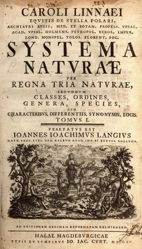 Figure 2 : The cover of Linnaeus' classic work, Systema Naturæ, which is generally considered to be the start of modern taxonomy.