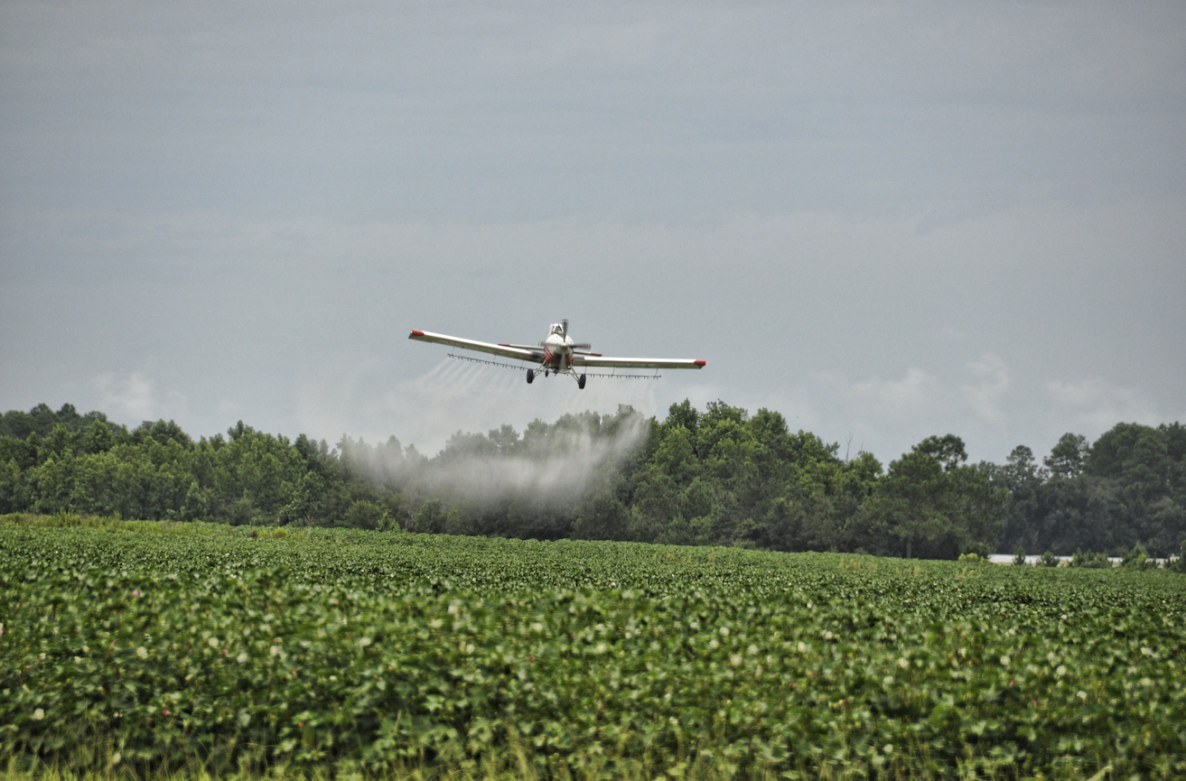 Spraying rice fields with fertilizer. The manufacturing of nitrogen-based fertilizers relies on stoichiometry to calculate how much starting material (N2 and H2) is needed to produce the desired amount of ammonia (NH3) to be used in the fertilizer.