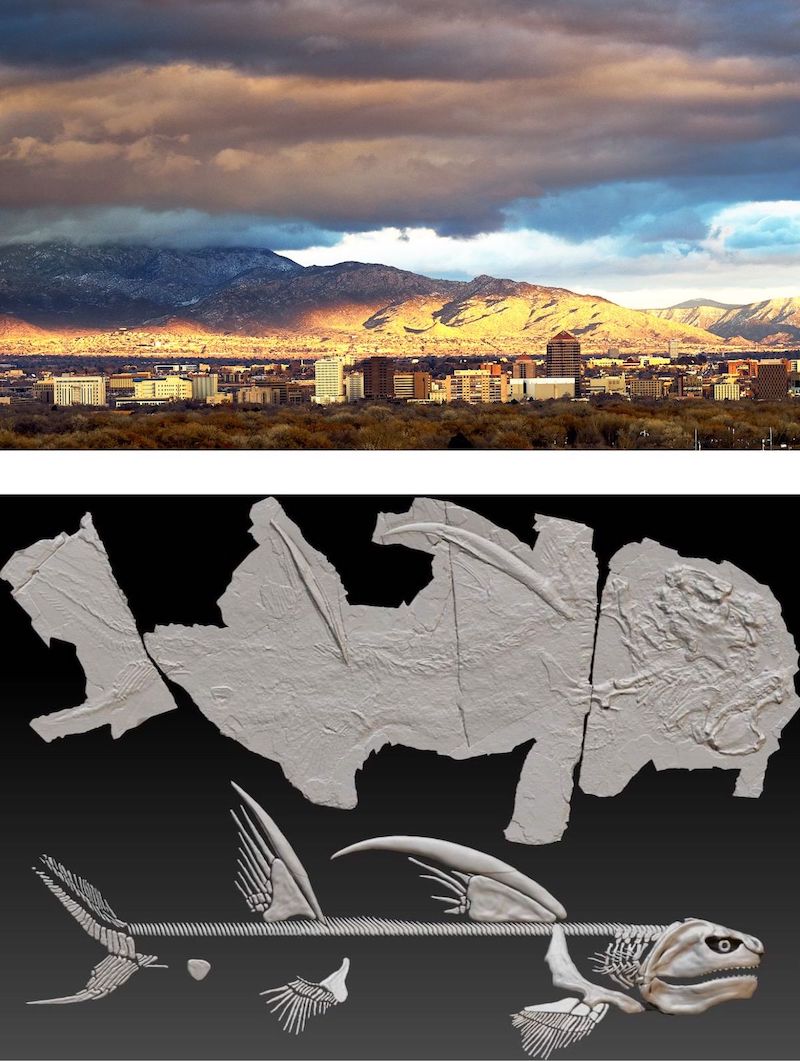 Figure 1: Albuquerque, New Mexico (top); Fossil found in Manzano Mountains (bottom).