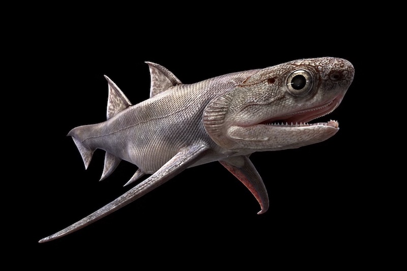 Over a decade in the Manzano Mountains, paleontologists recovered fossilized limb bones, fin spines, and jaw bones with teeth. Eventually—like piecing together a puzzle—they assembled an entire skeleton. Professionals recognized the skeleton as a new species that had died about 300 million years ago. Paleontologists named this specimen Dracopristis hoffmanorum (or “dragon shark”) for its impressive two-meter body, stubby teeth, and pair of long spines on its back.