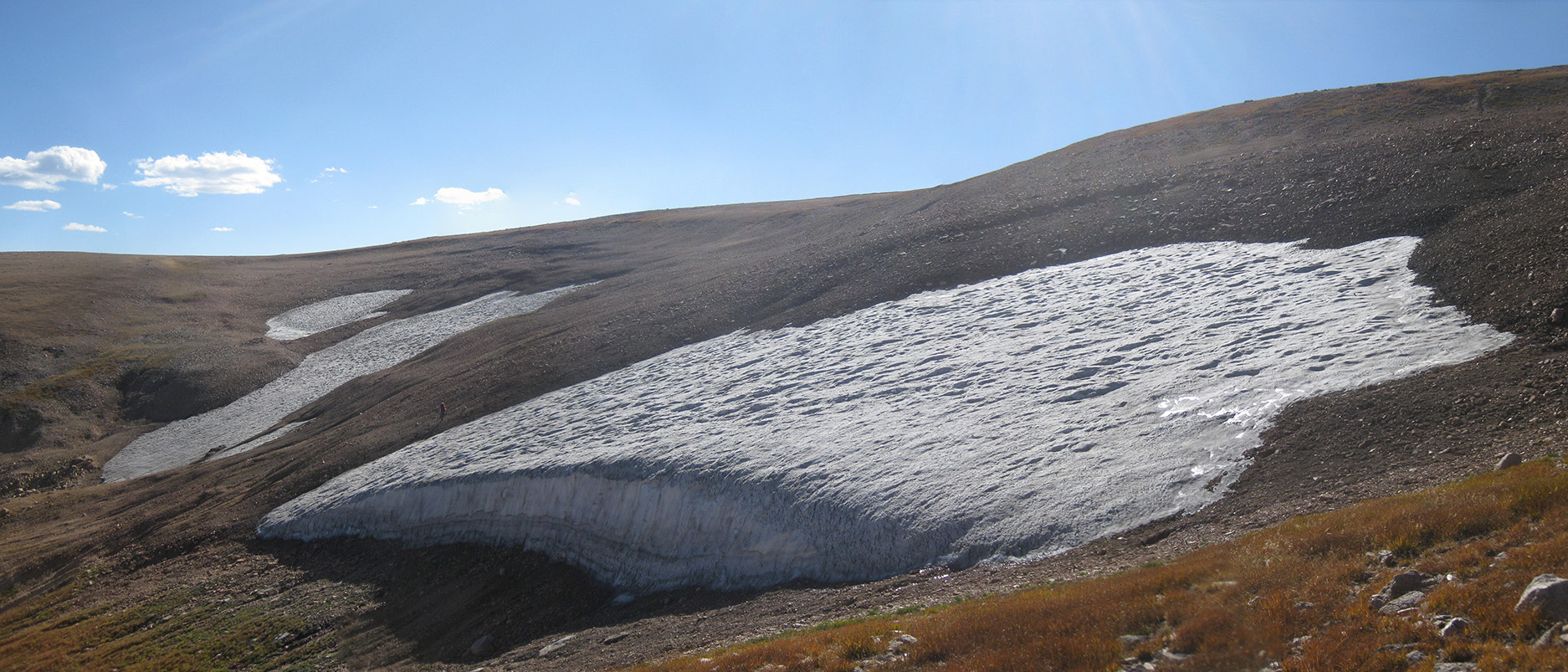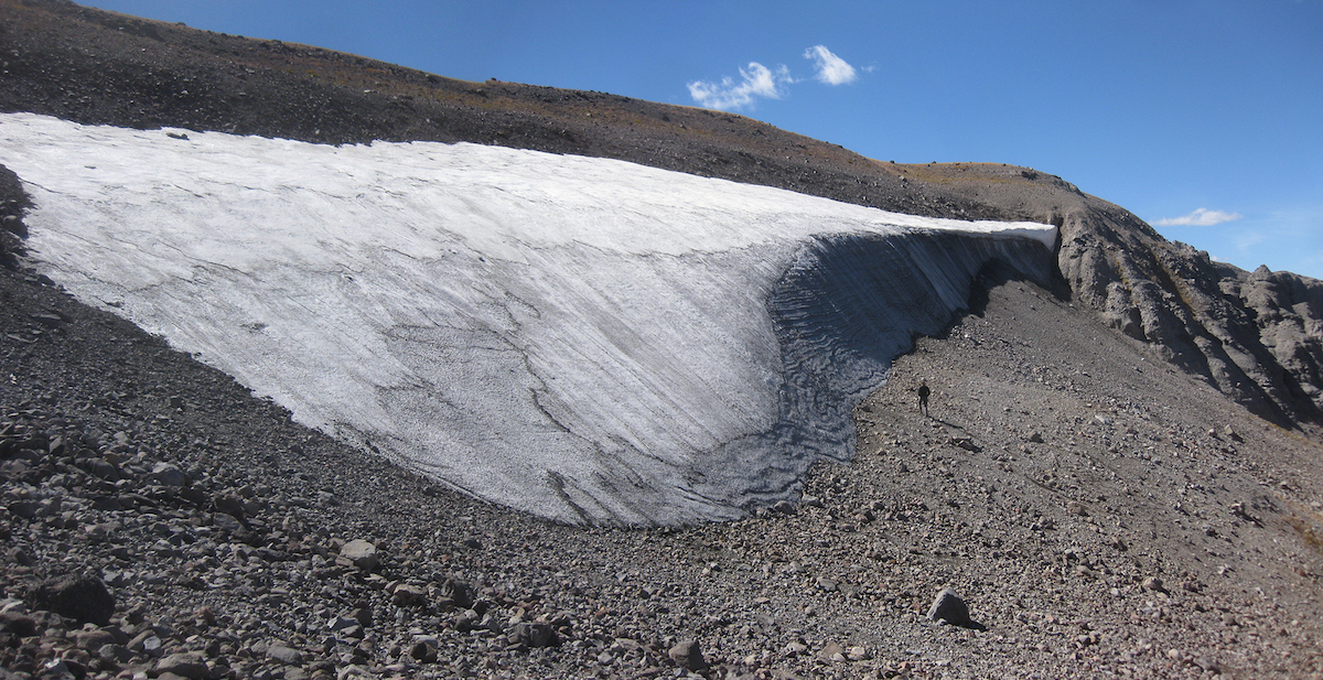 Figure 4: Ice patch in the Greater Yellowstone Area. Unlike glaciers, which move and crush objects, ice patches remain stable.