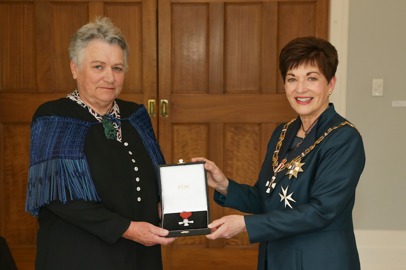 Figura 13: Ramari Stewart recibió la Orden del Mérito de Nueva Zelanda como parte de los Honores del Cumpleaños de la Reina Isabel II de 2020. El premio reconoció la investigación sobre ballenas indígenas de Ramari.