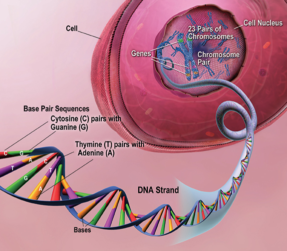 Figura 2: Ilustración de genes, cromosomas y componentes del ADN.
