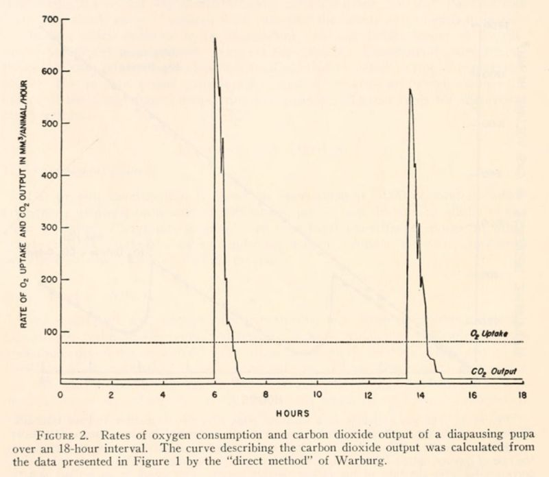 image © Schneiderman & Williams, 1955The bursts of carbon dioxide release correspond to patterns in spiracle activity: