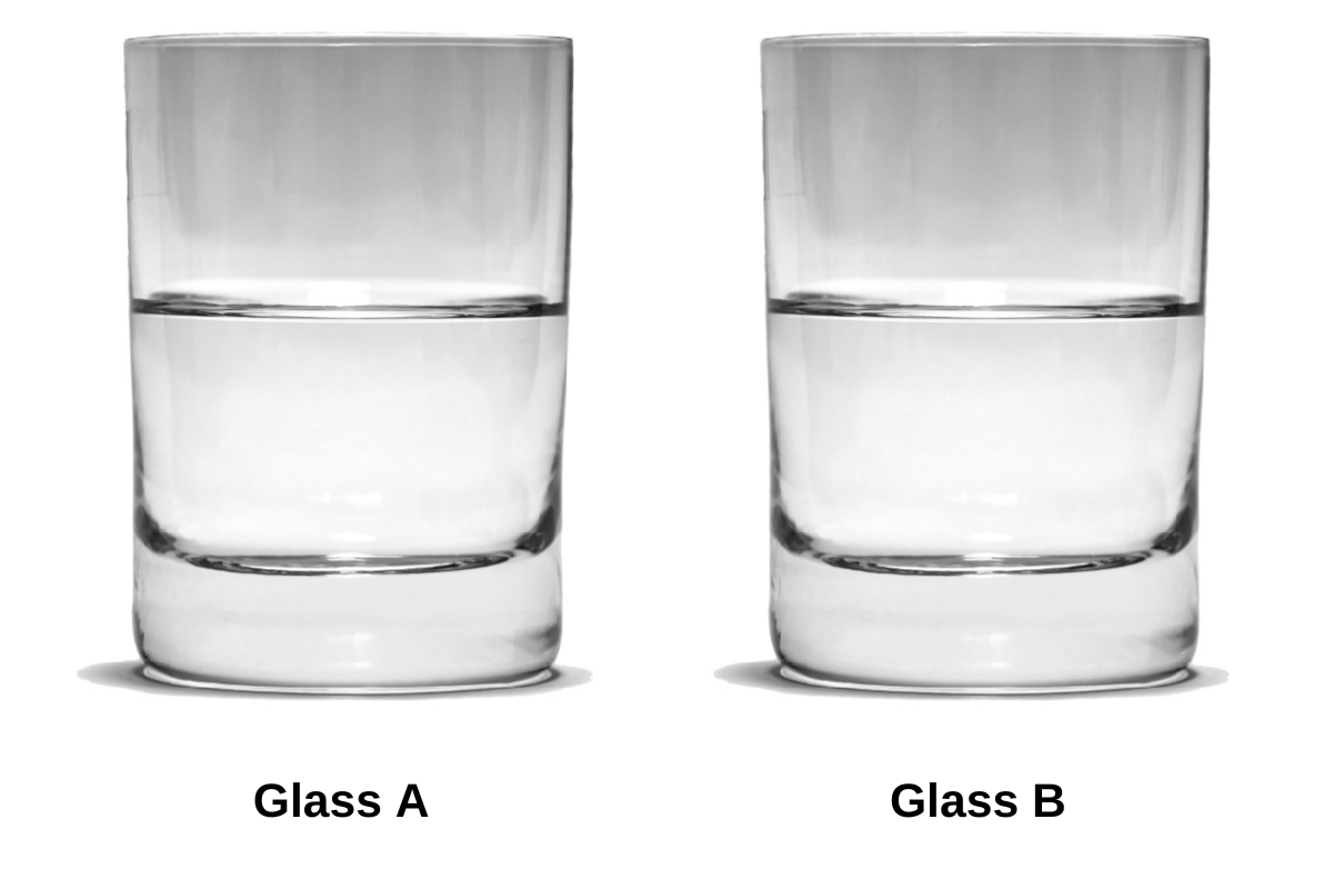 Figura 1: Dos vasos de agua, el Vaso A y el Vaso B, que parecen iguales. ¿Son lo mismo?